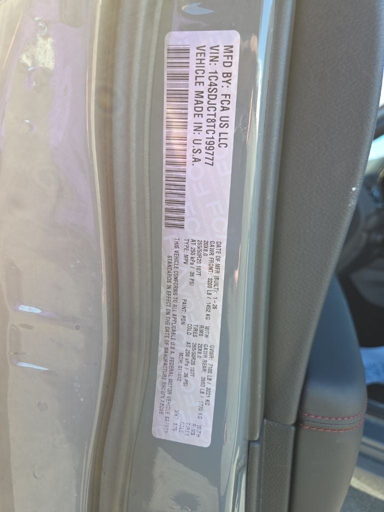 Step inside and discover a cabin that seamlessly blends luxury and functionality. Leather-trimmed bucket seats with ventilation provide unparalleled comfort, while the 10 touchscreen display with Uconnect 5 Nav and Apple CarPlay/Android Auto integration keep you connected and entertained. The Blacktop Package adds a touch of sophistication with its Gloss Black accents and Black Roof Rails, elevating the Durango's already striking appearance.