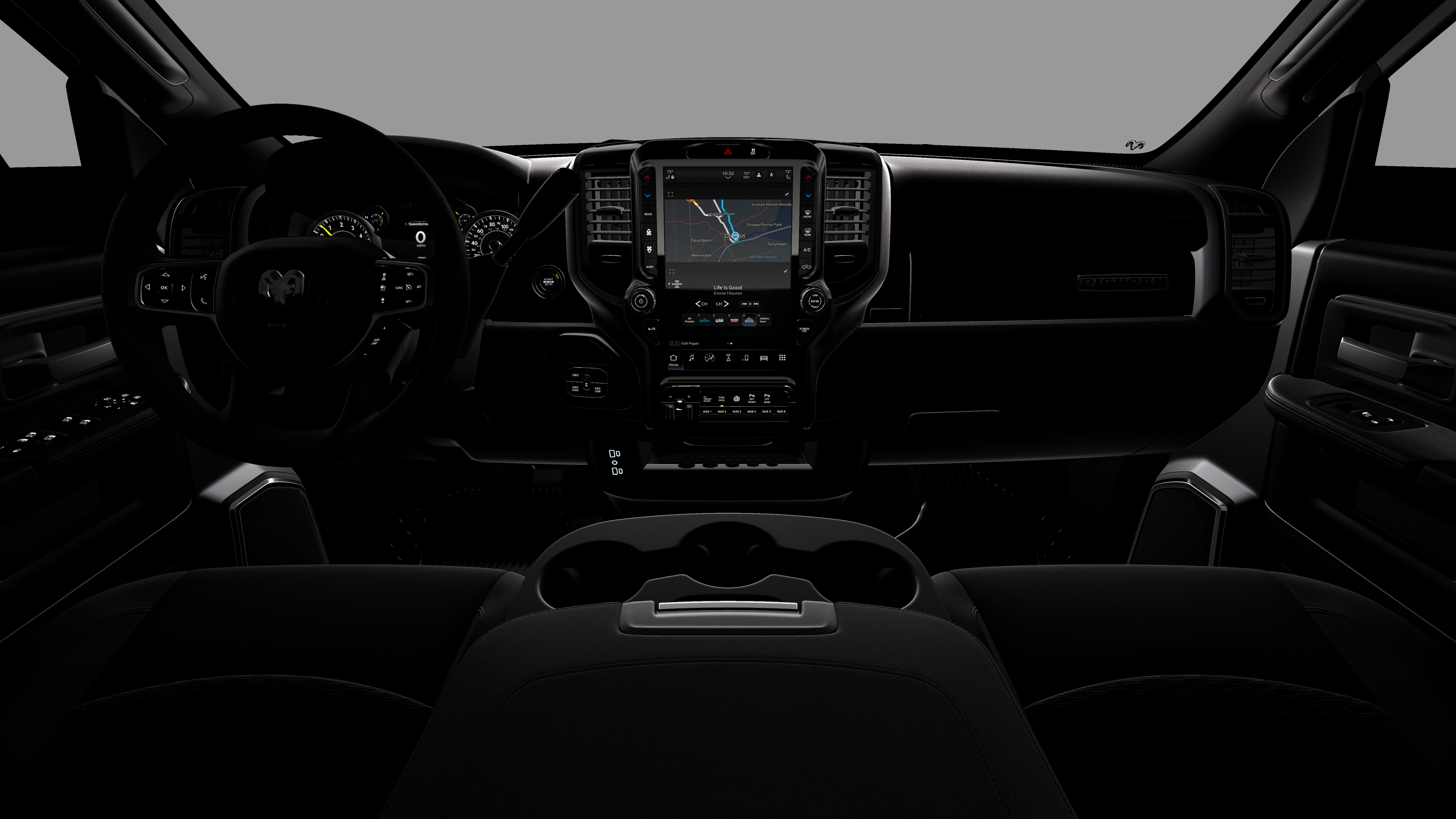 - Radio w/Seek-Scan, Clock, Speed Compensated Volume Control, Aux Audio Input Jack, Voice Activation, Radio Data System and Uconnect External Memory Control