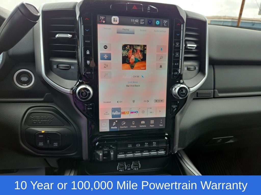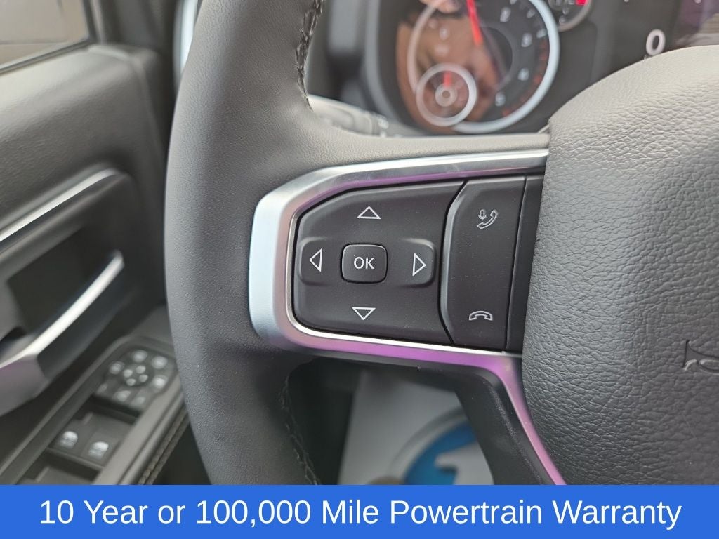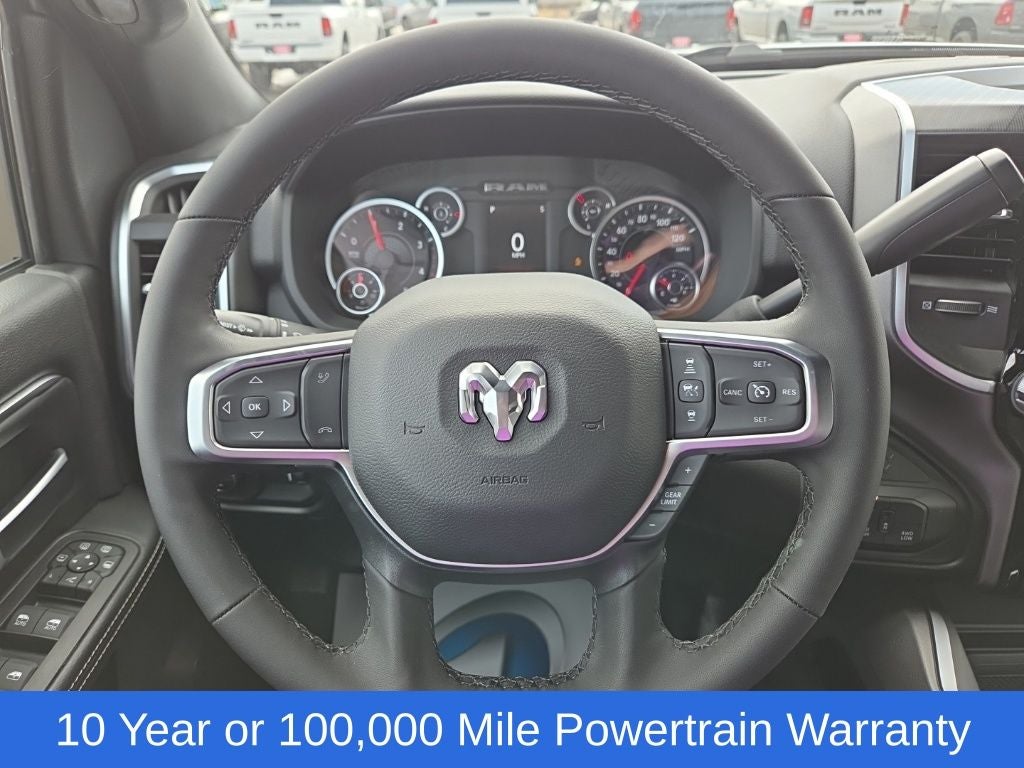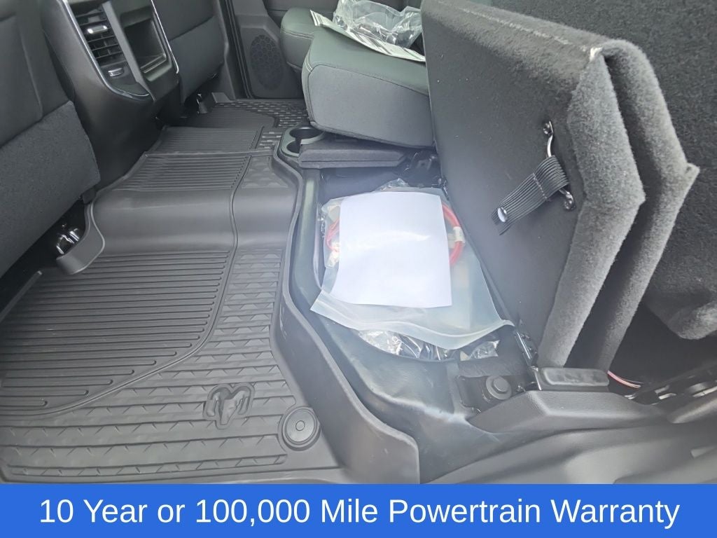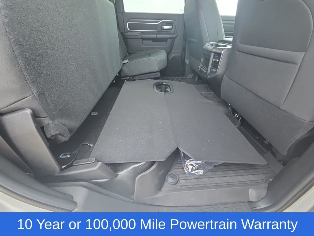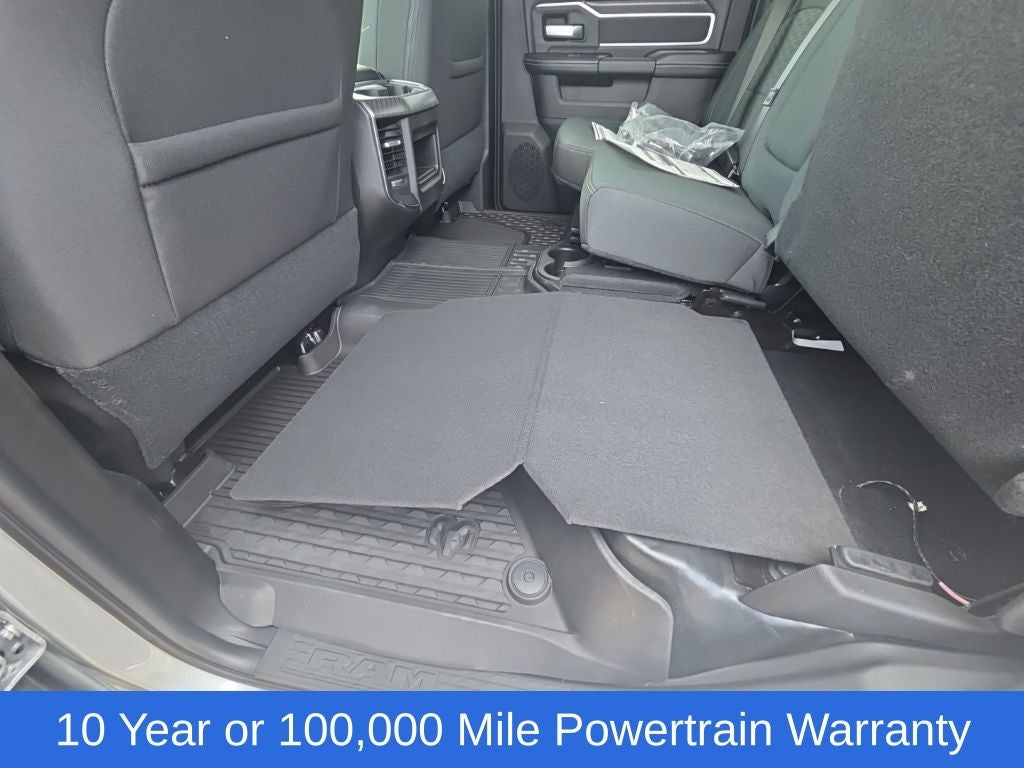 Big Horn Level 1 Plus Equipment Group (12 Touchscreen Display, 2 Way Rear Headrest Seat, 2nd Row in Floor Storage Bins, 4 Way Front Headrests, 40/20/40 Split Bench Seat, 4G LTE Wi-Fi Hot Spot, 9 Alpine Speakers with Subwoofer, Air Conditioning ATC with Dual Zone Control, Alexa Built-in, Apple CarPlay, Auto Power-Folding Mirrors, Auto-Dimming Rear-View Mirror, Black Exterior Mirrors, Cloth 40/20/40 Premium Bench Seat, Connected Travel and Traffic Services, Connectivity - US/Canada, Disassociated Touchscreen Display, Dual Glove Boxes, Emergency Vehicle Alert System (EVAS), Exterior Mirrors Courtesy Lamps, Exterior Mirrors with Heating Element, Exterior Mirrors with Supplemental Signals, Foam Bottle Insert (door Trim Panel), Folding Flat Load Floor Storage, Footwell Courtesy Lamp, For Details Visit DriveUconnect.com, For More Info, Call 800-643-2112, Forward and Reverse Utility Lights, Front Armrest with Cupholders, Front Center Seat Cushion Storage, Front Seat Back Map Pockets, Global Telematics Box Module, Glove Box Lamp, Google Android Auto, GPS Antenna Input, GPS Navigation, HD Radio, Integrated Voice Command with Bluetooth®, LED Bed Lighting, Locking Lower Glove Box, Luxury Steering Wheel, Manual Adjust 4-Way Front Passenger Seat, Mirror Running Lights, MOPAR Deployable Bed Step, MOPAR Spray in Bedliner, Off-Road Information Pages, Power 2-Way Driver Lumbar Adjust, Power Adjust 8-Way Driver Seat, Power Adjust Mirrors, Power Heated Fold Telescopic Mirrors, Power Telescoping Mirrors, Power-Adjustable Convex Aux Mirrors, Radio: Uconnect 5 Navigation with 12.0 Display, Rear 60/40 Folding Seat, Rear Dome with on/Off Switch Lamp, Remote Start System, Remote USB Port - Charge Only, Selectable Tire Fill Alert, SiriusXM Radio Service, SiriusXM with 360L, Steering Wheel Mounted Audio Controls, Storage Tray, and Trailer Tow Pages), Cold Weather Group (Engine Block Heater and MOPAR Winter Front Grille Cover), Heated Seats and Wheel Group (Heated Front Seats and Heated Steering Wheel), Quick Order Package 24Z Big Horn, 4-Wheel Disc Brakes, 50 Gallon Fuel Tank, 5th Wheel/Gooseneck Towing Prep Group, 6 Speakers, ABS brakes, Air Conditioning, Alloy wheels, AM/FM radio: SiriusXM, Apple CarPlay/Android Auto, Black Vinyl Floor Covering, Brake assist, Bumpers: chrome, Center Hub, Chrome Flat Wheel-to-Wheel Side Steps, Clearance Lamps, Cloth 40/20/40 Bench Seat, Compass, Dash Pass Thru Wire Circuits, Delay-off headlights, Delete Deployable Bed Step, Driver door bin, Dual front impact airbags, Dual front side impact airbags, Electronic Stability Control, Front anti-roll bar, Front Center Armrest w/Storage, Front fog lights, Front License Plate Bracket, Front reading lights, Fully automatic headlights, Heated door mirrors, Illuminated entry, Instrument Panel Mounted Auxiliary Switches, Low tire pressure warning, Manual Adjust 4-Way Driver Seat, Manufacturer's Statement of Origin, MOPAR Front and Rear Rubber Floor Mats, Occupant sensing airbag, Outside temperature display, Overhead airbag, Overhead console, Panic alarm, ParkView Rear Back-Up Camera, Passenger door bin, Passenger vanity mirror, Power door mirrors, Power steering, Power windows, Radio data system, Radio: Uconnect 5 with 8.4 Display, Rear Folding Seat, Rear seat center armrest, Rear step bumper, Rear Wheelhouse Liners, Rear window defroster, Remote keyless entry, Security Alarm, Speed control, Tachometer, Tilt steering wheel, Traction control, Trip computer, Turn signal indicator mirrors, Variably intermittent wipers, Voltmeter, and Wheels: 18 x 8.0 Polished AluminuM.