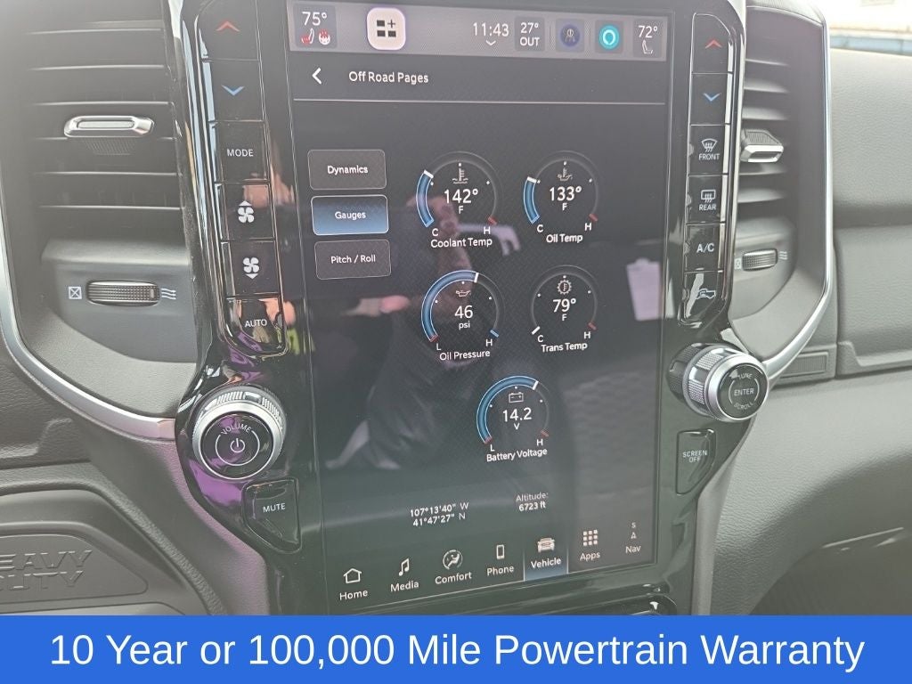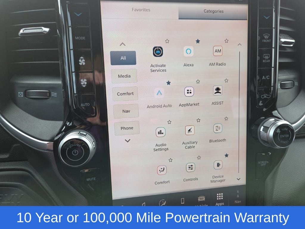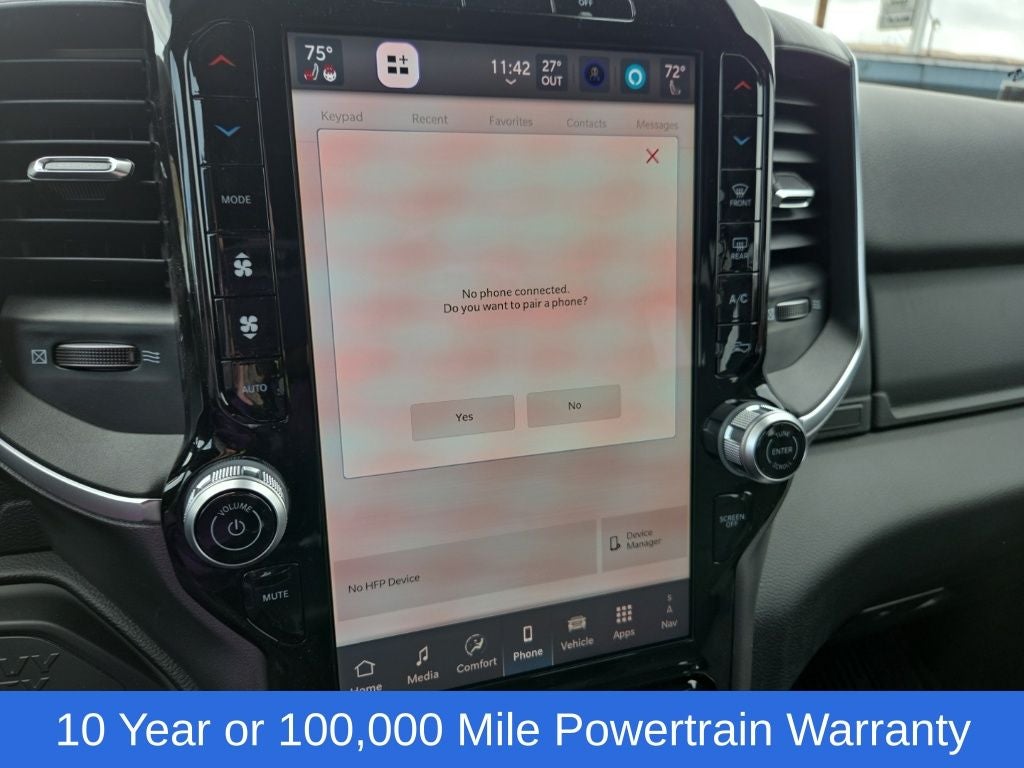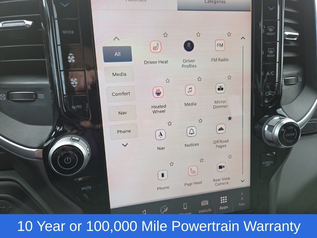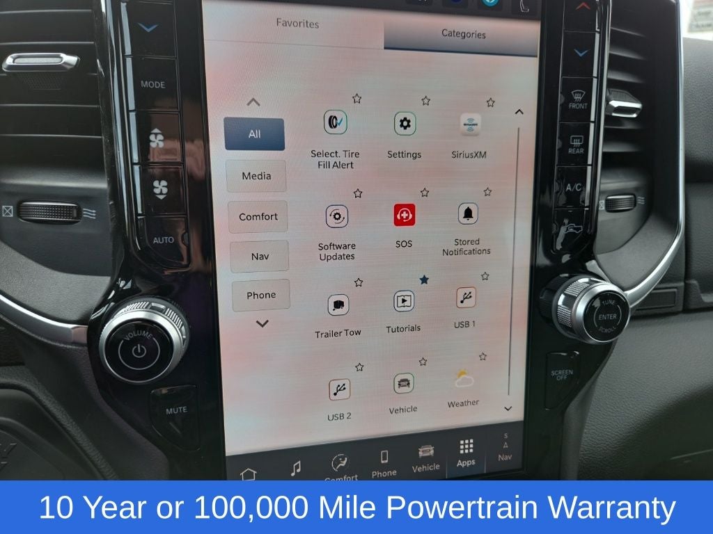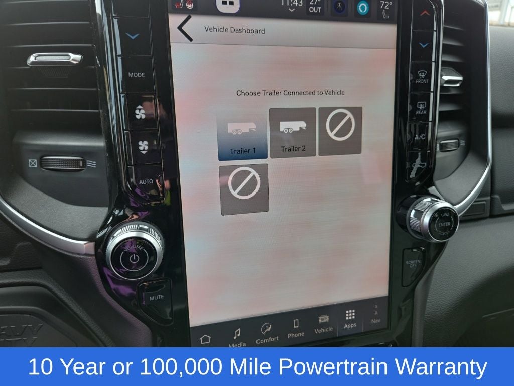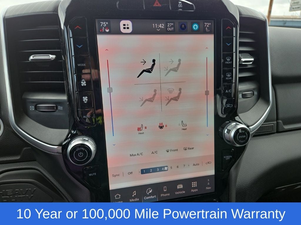 Big Horn Level 1 Plus Equipment Group (12 Touchscreen Display, 2 Way Rear Headrest Seat, 2nd Row in Floor Storage Bins, 4 Way Front Headrests, 40/20/40 Split Bench Seat, 4G LTE Wi-Fi Hot Spot, 9 Alpine Speakers with Subwoofer, Air Conditioning ATC with Dual Zone Control, Alexa Built-in, Apple CarPlay, Auto Power-Folding Mirrors, Auto-Dimming Rear-View Mirror, Black Exterior Mirrors, Cloth 40/20/40 Premium Bench Seat, Connected Travel and Traffic Services, Connectivity - US/Canada, Disassociated Touchscreen Display, Dual Glove Boxes, Emergency Vehicle Alert System (EVAS), Exterior Mirrors Courtesy Lamps, Exterior Mirrors with Heating Element, Exterior Mirrors with Supplemental Signals, Foam Bottle Insert (door Trim Panel), Folding Flat Load Floor Storage, Footwell Courtesy Lamp, For Details Visit DriveUconnect.com, For More Info, Call 800-643-2112, Forward and Reverse Utility Lights, Front Armrest with Cupholders, Front Center Seat Cushion Storage, Front Seat Back Map Pockets, Global Telematics Box Module, Glove Box Lamp, Google Android Auto, GPS Antenna Input, GPS Navigation, HD Radio, Integrated Voice Command with Bluetooth®, LED Bed Lighting, Locking Lower Glove Box, Luxury Steering Wheel, Manual Adjust 4-Way Front Passenger Seat, Mirror Running Lights, MOPAR Deployable Bed Step, MOPAR Spray in Bedliner, Off-Road Information Pages, Power 2-Way Driver Lumbar Adjust, Power Adjust 8-Way Driver Seat, Power Adjust Mirrors, Power Heated Fold Telescopic Mirrors, Power Telescoping Mirrors, Power-Adjustable Convex Aux Mirrors, Radio: Uconnect 5 Navigation with 12.0 Display, Rear 60/40 Folding Seat, Rear Dome with on/Off Switch Lamp, Remote Start System, Remote USB Port - Charge Only, Selectable Tire Fill Alert, SiriusXM Radio Service, SiriusXM with 360L, Steering Wheel Mounted Audio Controls, Storage Tray, and Trailer Tow Pages), Cold Weather Group (Engine Block Heater and MOPAR Winter Front Grille Cover), Heated Seats and Wheel Group (Heated Front Seats and Heated Steering Wheel), Quick Order Package 24Z Big Horn, 4-Wheel Disc Brakes, 50 Gallon Fuel Tank, 5th Wheel/Gooseneck Towing Prep Group, 6 Speakers, ABS brakes, Air Conditioning, Alloy wheels, AM/FM radio: SiriusXM, Apple CarPlay/Android Auto, Black Vinyl Floor Covering, Brake assist, Bumpers: chrome, Center Hub, Chrome Flat Wheel-to-Wheel Side Steps, Clearance Lamps, Cloth 40/20/40 Bench Seat, Compass, Dash Pass Thru Wire Circuits, Delay-off headlights, Delete Deployable Bed Step, Driver door bin, Dual front impact airbags, Dual front side impact airbags, Electronic Stability Control, Front anti-roll bar, Front Center Armrest w/Storage, Front fog lights, Front License Plate Bracket, Front reading lights, Fully automatic headlights, Heated door mirrors, Illuminated entry, Instrument Panel Mounted Auxiliary Switches, Low tire pressure warning, Manual Adjust 4-Way Driver Seat, Manufacturer's Statement of Origin, MOPAR Front and Rear Rubber Floor Mats, Occupant sensing airbag, Outside temperature display, Overhead airbag, Overhead console, Panic alarm, ParkView Rear Back-Up Camera, Passenger door bin, Passenger vanity mirror, Power door mirrors, Power steering, Power windows, Radio data system, Radio: Uconnect 5 with 8.4 Display, Rear Folding Seat, Rear seat center armrest, Rear step bumper, Rear Wheelhouse Liners, Rear window defroster, Remote keyless entry, Security Alarm, Speed control, Tachometer, Tilt steering wheel, Traction control, Trip computer, Turn signal indicator mirrors, Variably intermittent wipers, Voltmeter, and Wheels: 18 x 8.0 Polished AluminuM.