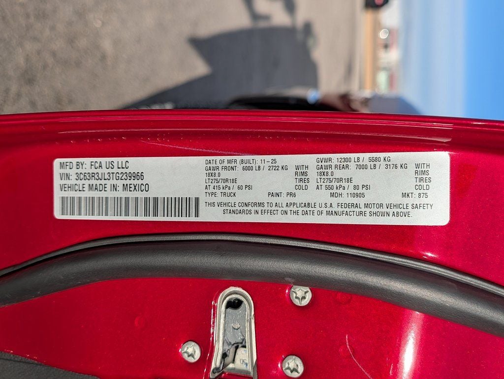 - Rear Tire Size: LT275/70SR18