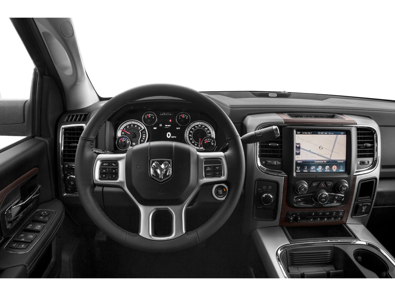 This truck is packed with premium features that will make every drive a pleasure. The leather-trimmed interior, heated and ventilated front seats, and power-folding trailer tow mirrors provide unparalleled comfort and convenience. The advanced Uconnect infotainment system with navigation, SiriusXM satellite radio, and Bluetooth® connectivity keeps you connected and entertained on the go.