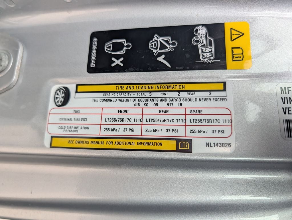 - Wheels: 17" x 7.5" Black Aluminum w/Gray Pad