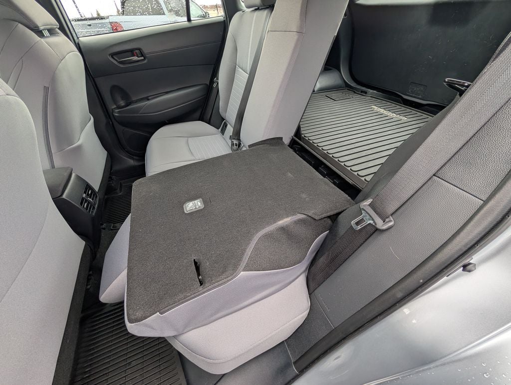 The interior of the Corolla Cross Hybrid S is thoughtfully designed, with a focus on comfort and convenience. Enjoy the convenience of features like the 8 touch-screen display audio system, steering wheel-mounted audio controls, and automatic temperature control. The spacious cabin and split-folding rear seats offer ample room for both passengers and cargo, making this vehicle an ideal choice for families or those with active lifestyles.
