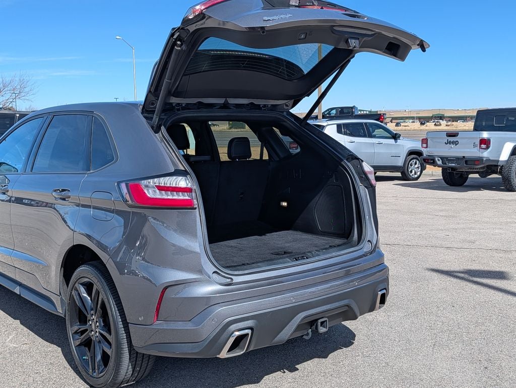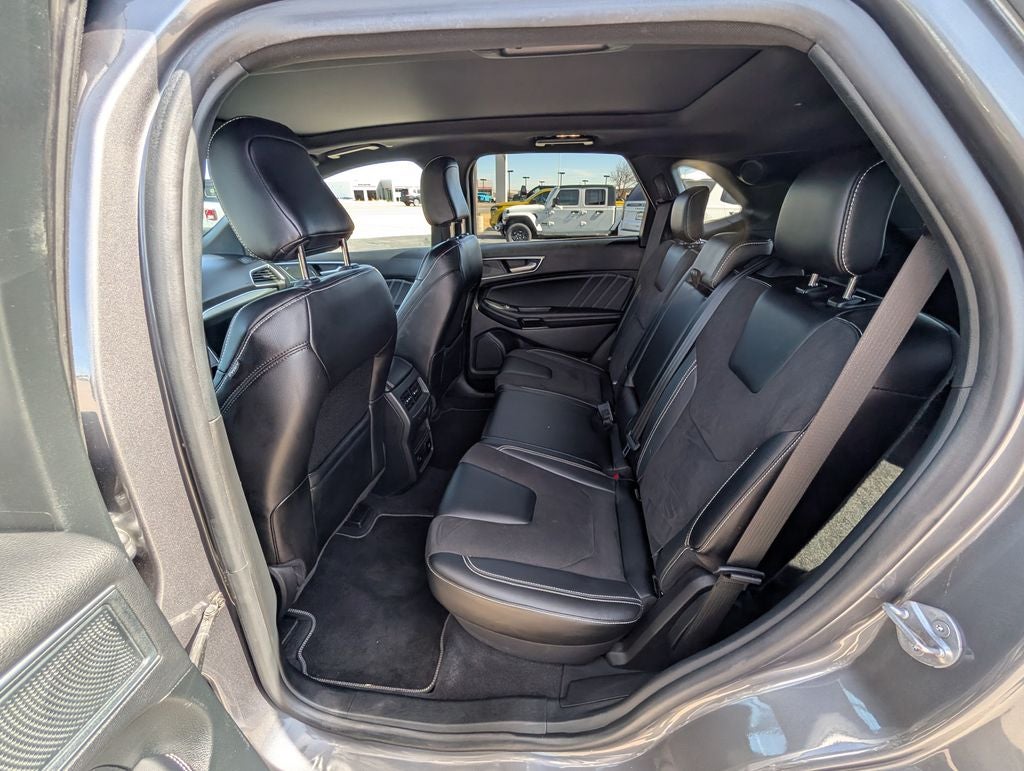 The Edge ST's bold, athletic styling commands attention on the road. The gloss black-painted 21-inch alloy wheels, unique front grille, and ST-specific badging exude a confident, sporty presence. Step inside the cabin and you'll be surrounded by premium materials, including leather-trimmed heated and cooled front seats, a heated steering wheel, and a panoramic Vista Roof that floods the interior with natural light.