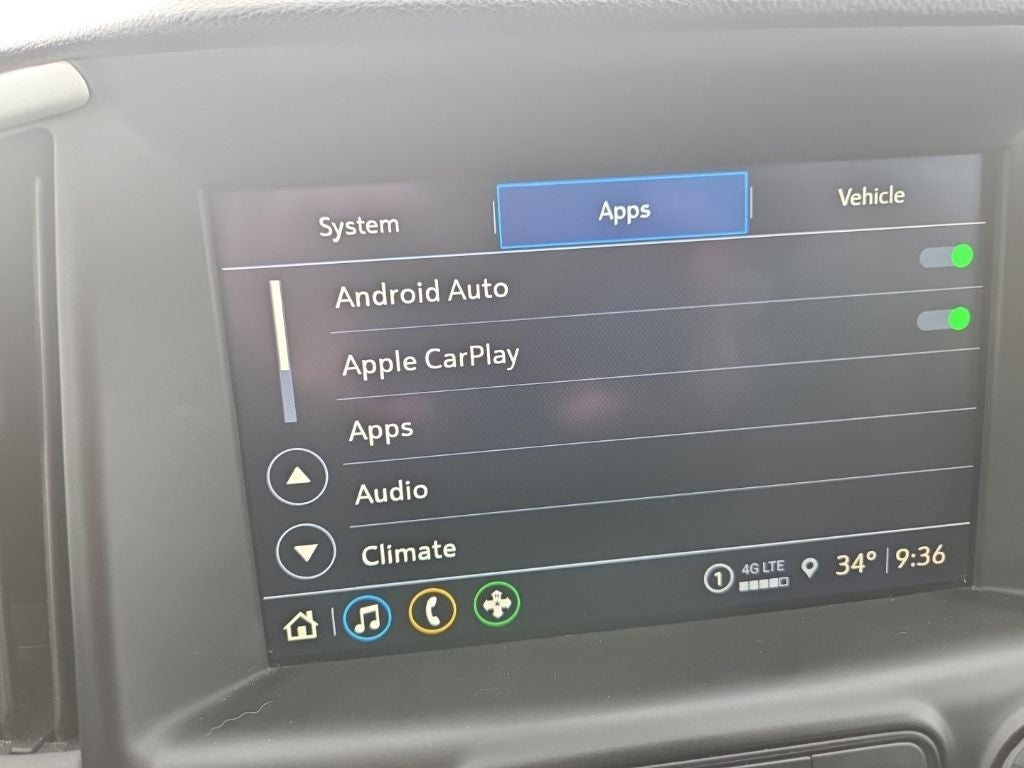 - Audio system, 8" diagonal GMC Infotainment System includes multi-touch display, AM/FM/SiriusXM stereo, Bluetooth® streaming audio for music and most phones, Android Auto and Apple CarPlay capability for compatible phones, advanced voice recognition, in-vehicle apps, personalized profiles for infotainment and vehicle settings