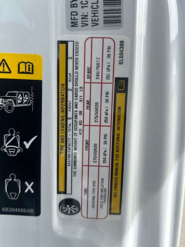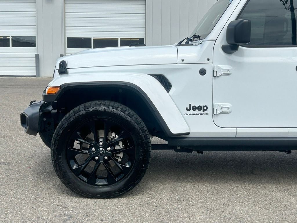 Standout features include the Dana M210 wide front axle, Dana M220 wide rear axle, sport rear shock absorbers, daytime running lamps, anti-spin differential rear axle, heavy-duty engine cooling, and body color fender flares. Enjoy the convenience of power heated mirrors, protection sill rails, and auxiliary switches. This Gladiator also boasts a Class IV receiver hitch, trailer hitch zoom, and MOPAR spray-in bedliner for enhanced utility.